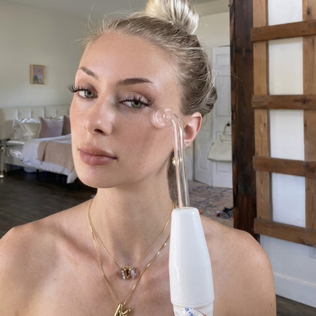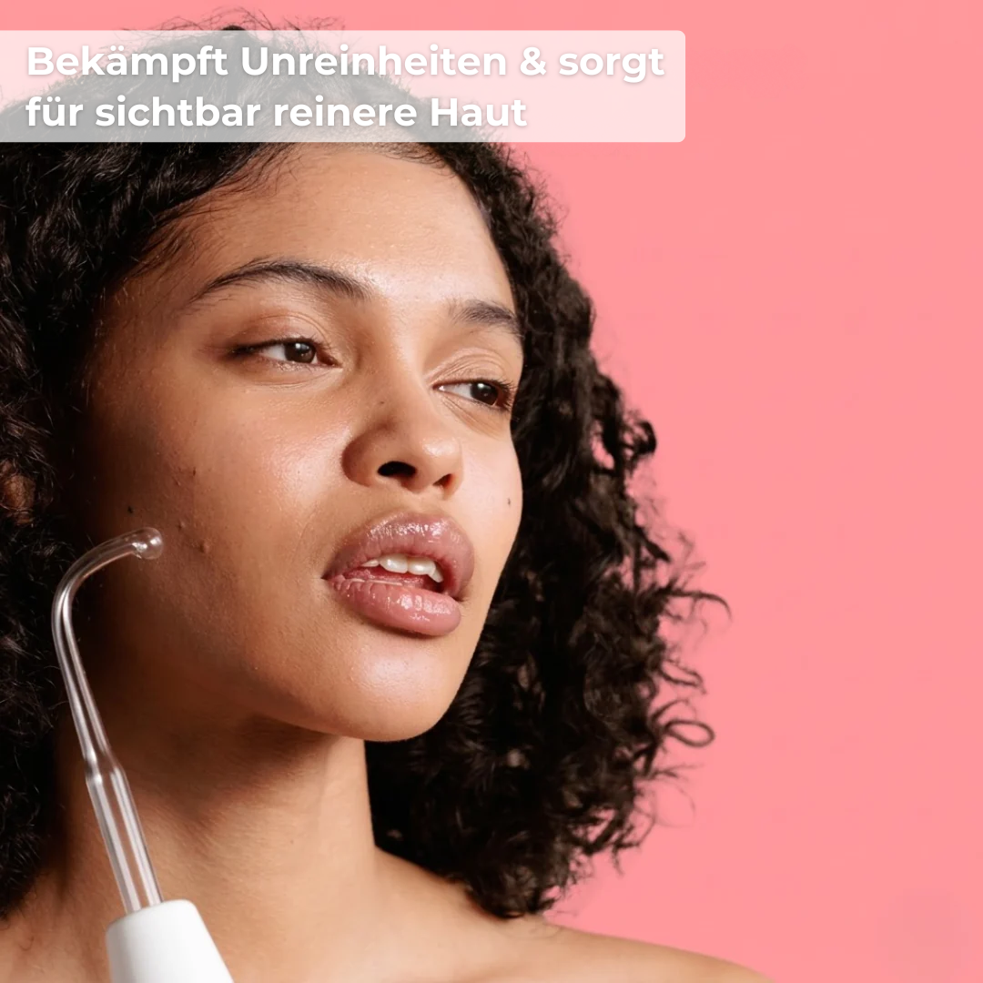 Der DermaGlow arbeitet mit sanfter Hochfrequenztechnologie, regt die Zellerregung an und bringt deine Haut sichtbar in Balance. Gleichzeitig werden Bakterien bei Unreinheiten bekämpft, die Durchblutung gefördert und dein natürlicher Glow aktiviert – für Ergebnisse, die sonst nur Filter schaffen.