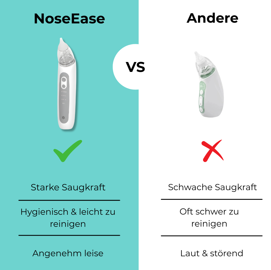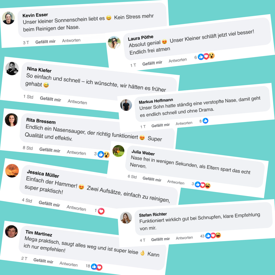 Wir hatten vorher so einen klassischen Nasensauger hat kaum funktioniert. Mit NoseEase bekommt man den Schleim endlich richtig raus.